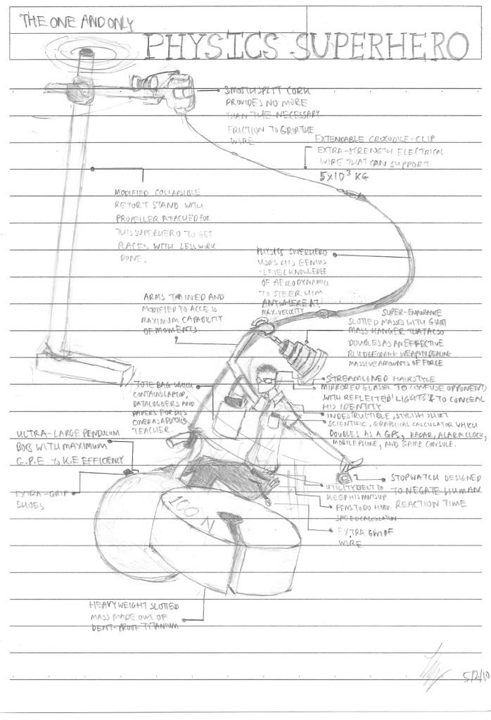 For people who aren't in on this, on Monday Mr Liu left a note on our class' whiteboard, which ended off with "Your friendly neighbourhood Physics superhero".